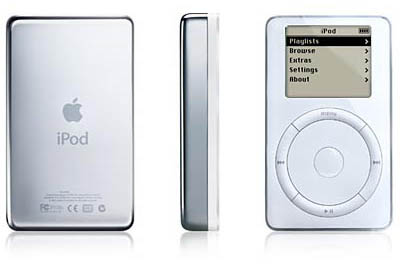 iPod 10GB de 2ª geração Processador ARM 7TDMI 133Mhz Disco de 10GB Introduzido no mercado em Julho 2002 Retirado do mercado em Abril 2003